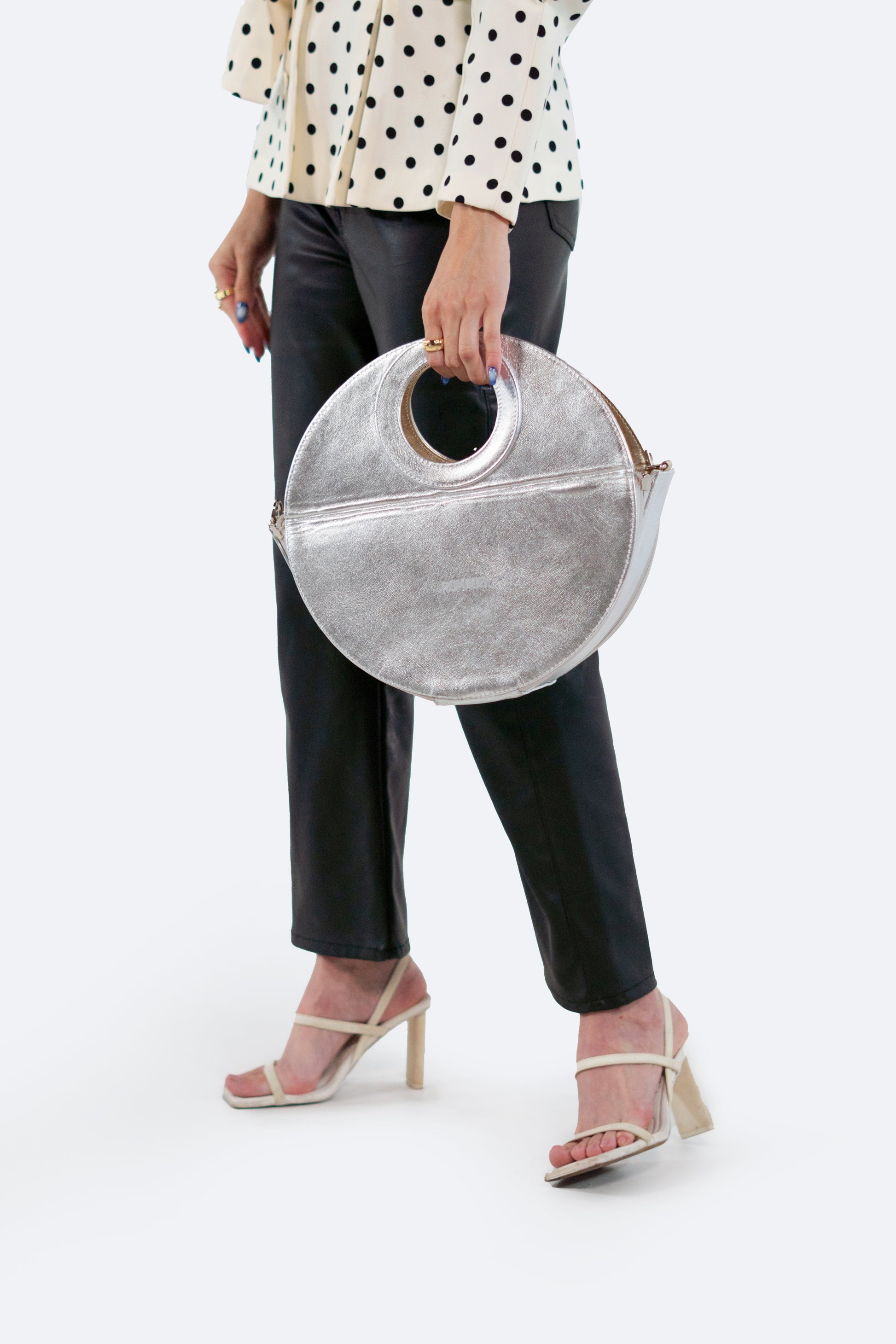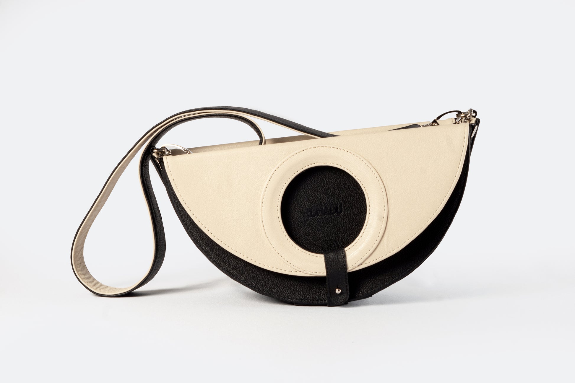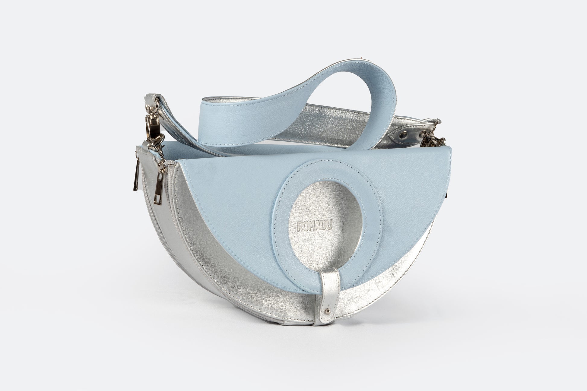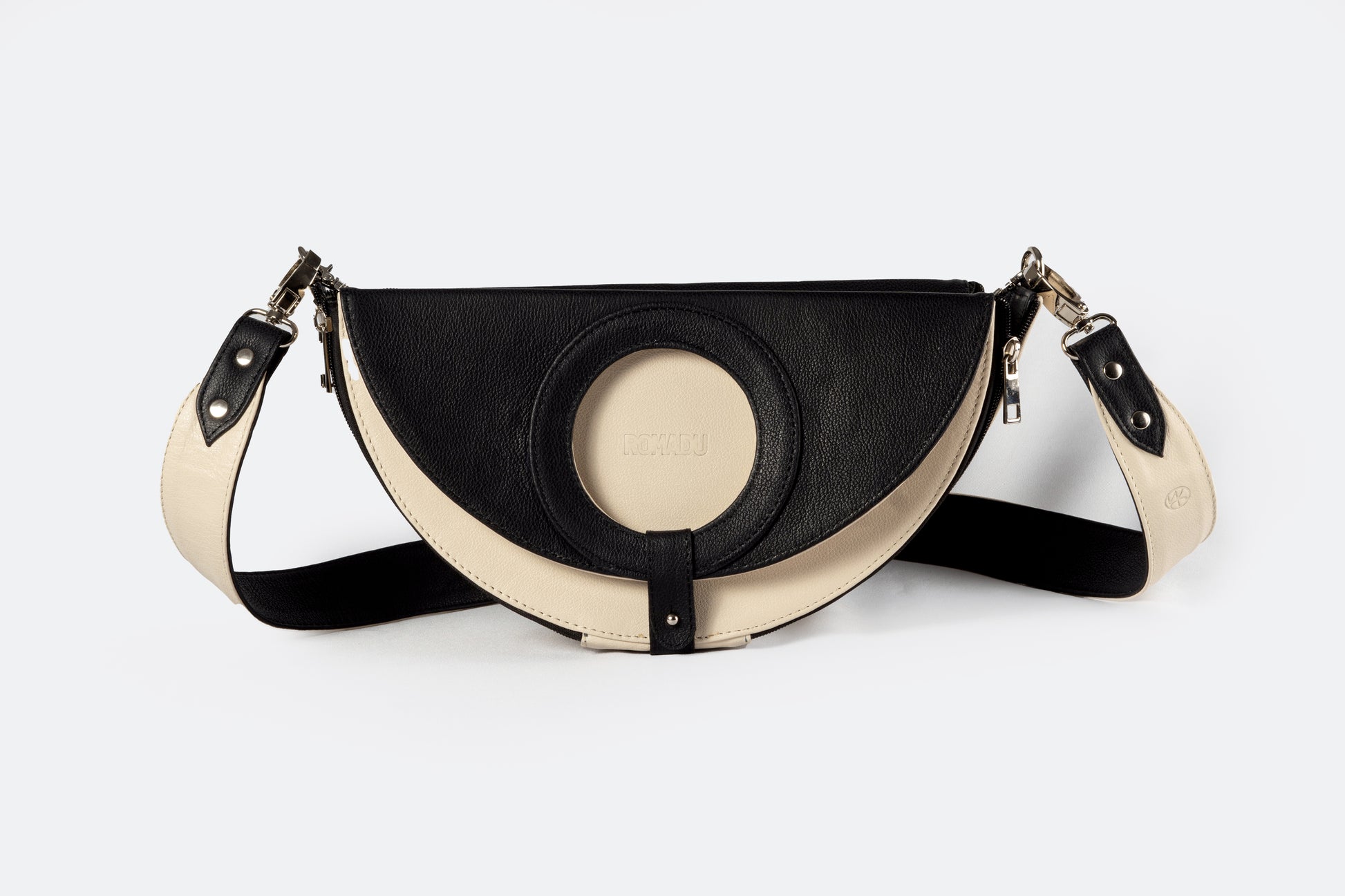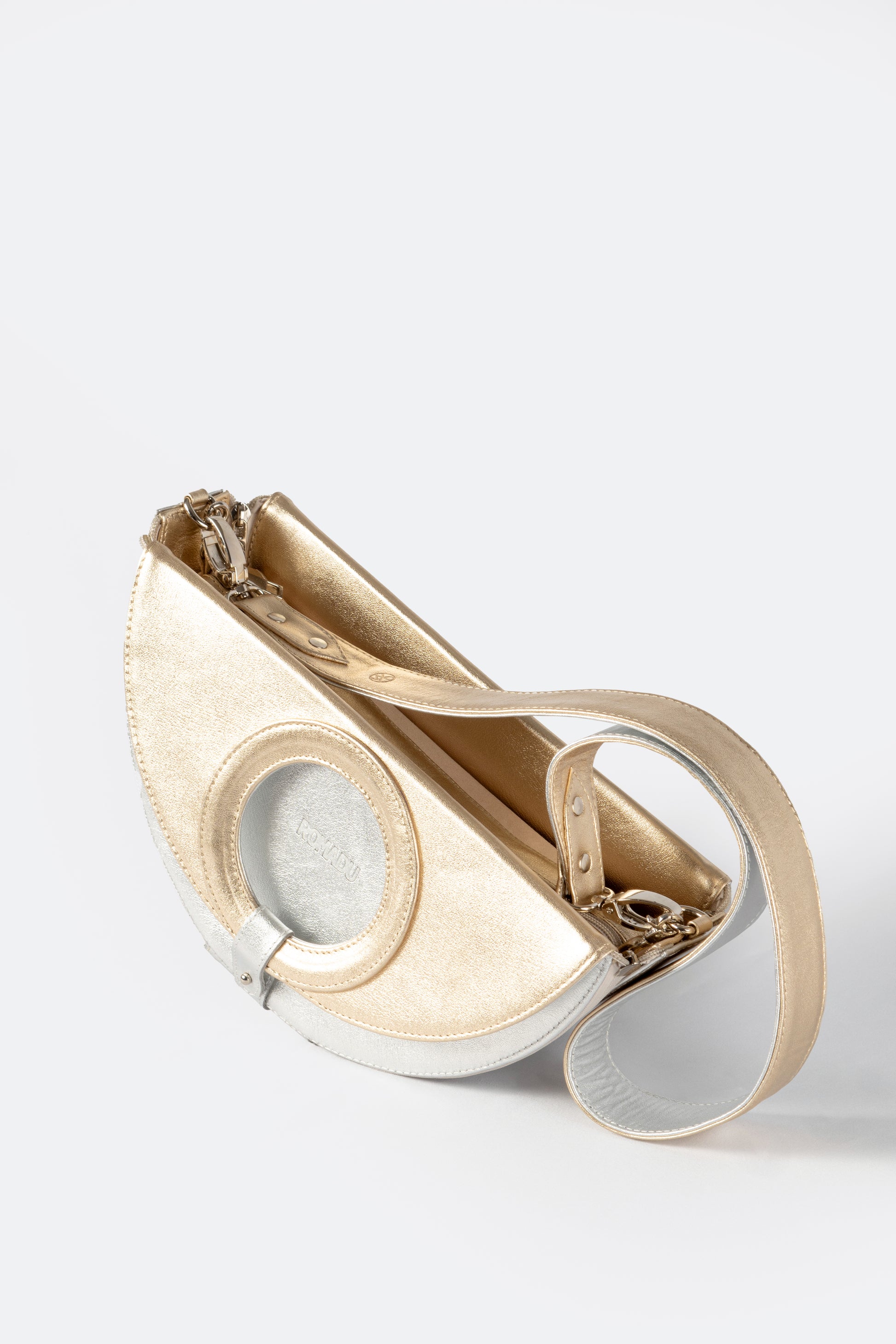 Una bolsa versátil 4 en 1 que combina funcionalidad y estilo. Disponible en combinaciones de negro con marfil, plateado con azul bebé y plateado con dorado, esta bolsa ofrece múltiples opciones en un solo diseño. Incluye una correa gruesa desmontable y herrajes de seguridad en níquel, garantizando elegancia y durabilidad. Hecha en México con materiales de alta calidad, cuenta con un detalle de piel y un interior con forro textil. Su diseño te permite elegir entre una forma circular o de media luna, con un cintillo de piel desmontable para facilitar el cambio de forma. Además, gracias a sus cuatro cierres de nylon (dos a cada lado), puedes cambiar el color de la base al instante al voltear la bolsa, adaptando tu estilo en cuestión de segundos. Elaborada con 100% cuero vacuno y acabados de primera, esta bolsa es una verdadera obra maestra de versatilidad.
