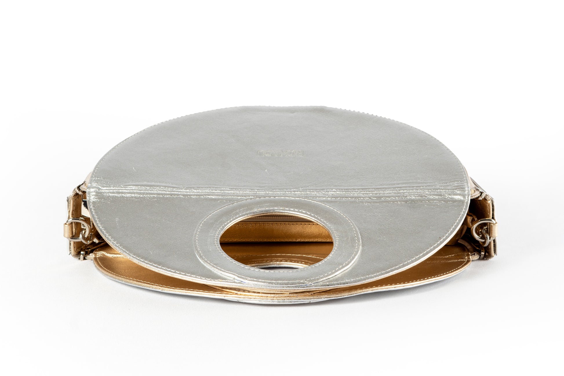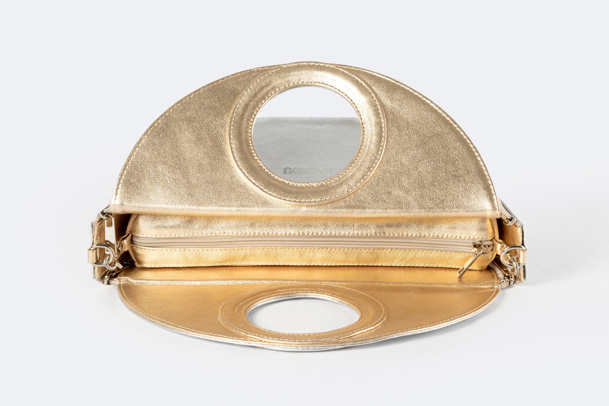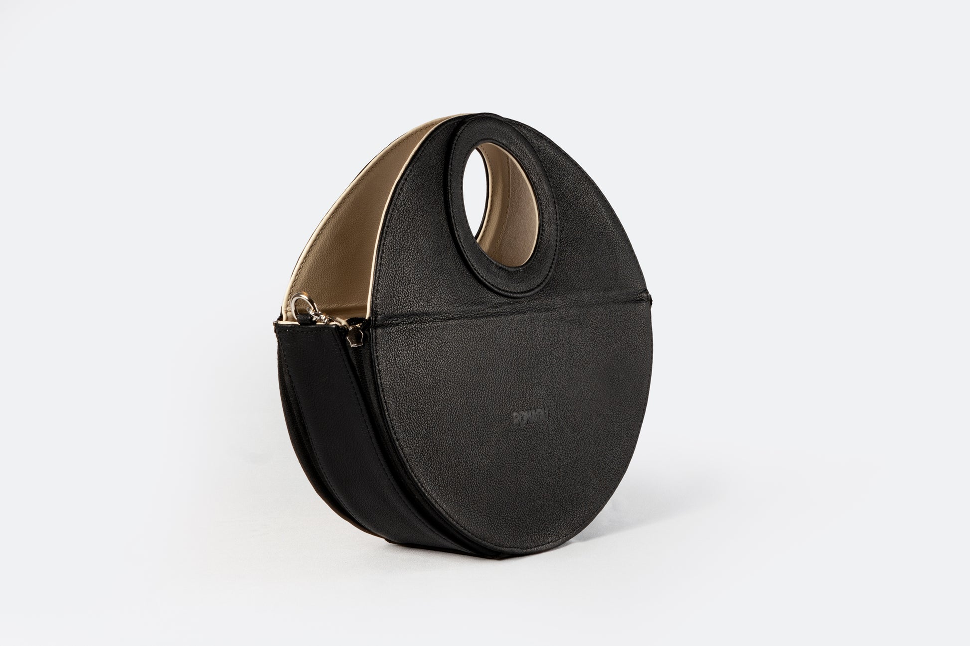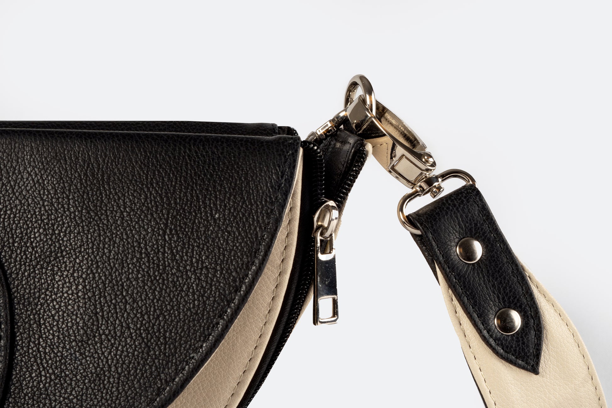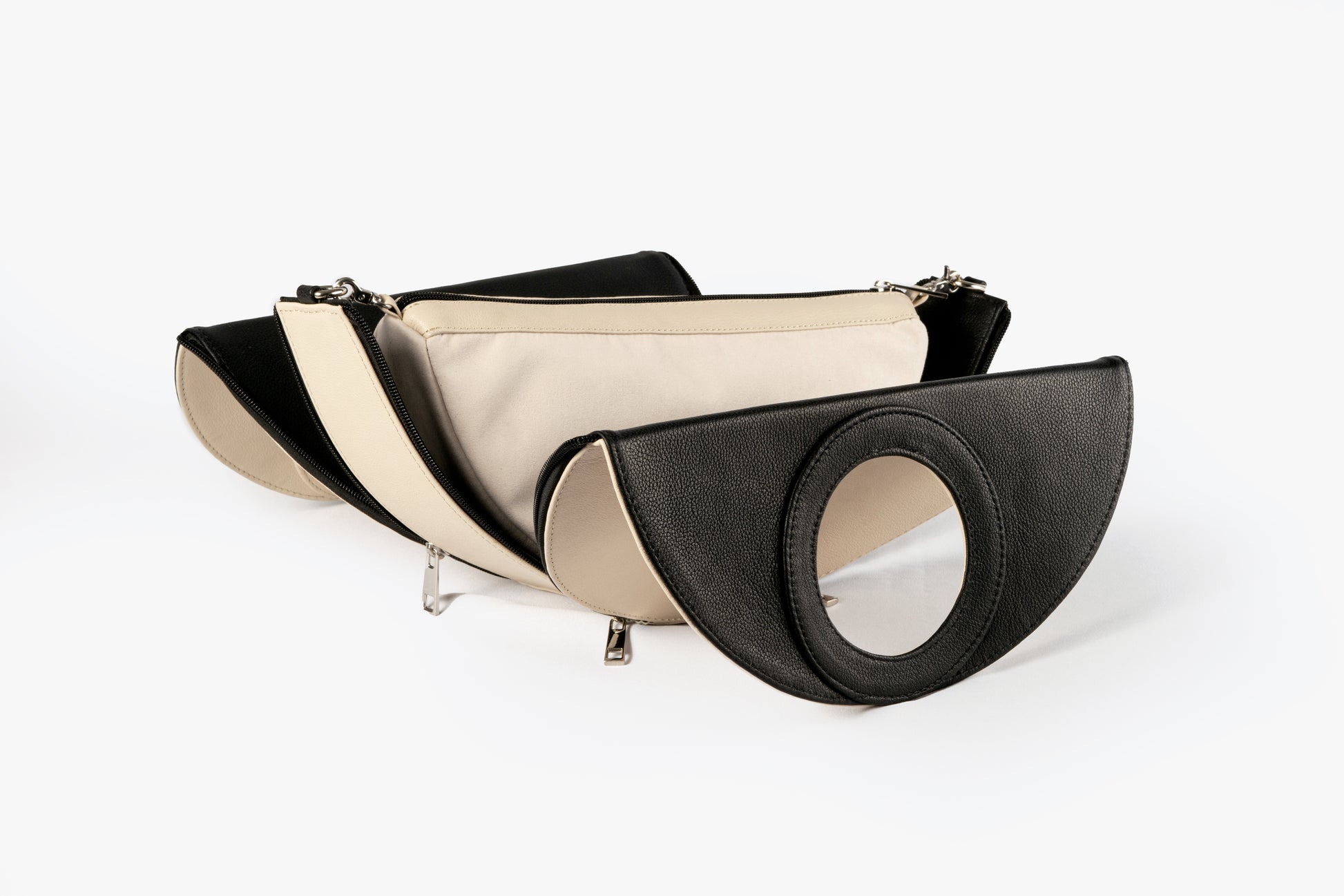 Una bolsa versátil 4 en 1 que combina funcionalidad y estilo. Disponible en combinaciones de negro con marfil, plateado con azul bebé y plateado con dorado, esta bolsa ofrece múltiples opciones en un solo diseño. Incluye una correa gruesa desmontable y herrajes de seguridad en níquel, garantizando elegancia y durabilidad. Hecha en México con materiales de alta calidad, cuenta con un detalle de piel y un interior con forro textil. Su diseño te permite elegir entre una forma circular o de media luna, con un cintillo de piel desmontable para facilitar el cambio de forma. Además, gracias a sus cuatro cierres de nylon (dos a cada lado), puedes cambiar el color de la base al instante al voltear la bolsa, adaptando tu estilo en cuestión de segundos. Elaborada con 100% cuero vacuno y acabados de primera, esta bolsa es una verdadera obra maestra de versatilidad.